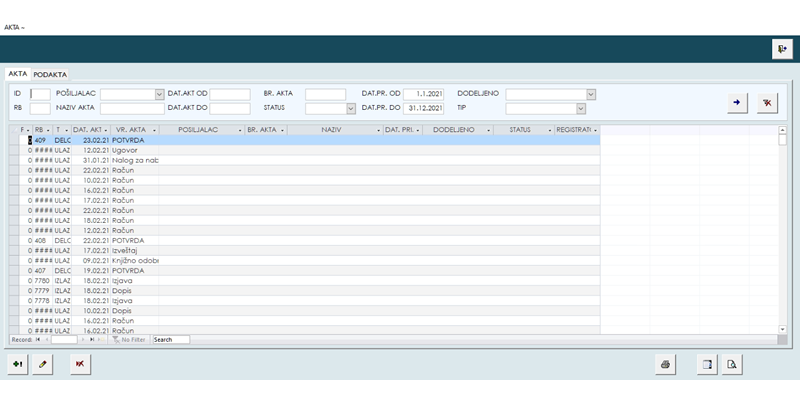 | Akta | Zaposleni, Vrsta dokumenata, Pošiljaoci |